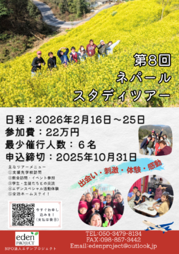 第8回ネパールスタディツアー 開催日程:2026年2月16~25日(9泊10日) 参加費:22万円(航空代、宿泊費、交通費、食費込み)……